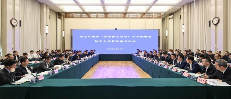 2025年3月6日,生態環境部(國家核安全局)與中核集團召開核安全監管年度對話會,反饋交流重點關注的核安全問題。生態環境部副部長、國家核安全局局長董保同主持,中核集團總經理、黨組副書記申彥鋒,黨組成員、副總經理張凱等參加。