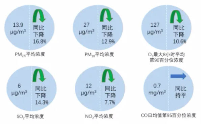 8月,全國339個地級及以上城市PM2.5平均濃度為13.9微克/立方米,同比下降16.8%;PM10平均濃度為27微克/立方米,同比下降12.9%;O3平均濃度為127微克/立方米,同比下降10.6%;SO2平均濃度為6微克/立方米,同比下降14.3%;NO2平均濃度為12微克/立方米,同比下降7.7%;CO平均濃度為0.7毫克/立方米,同比持平。